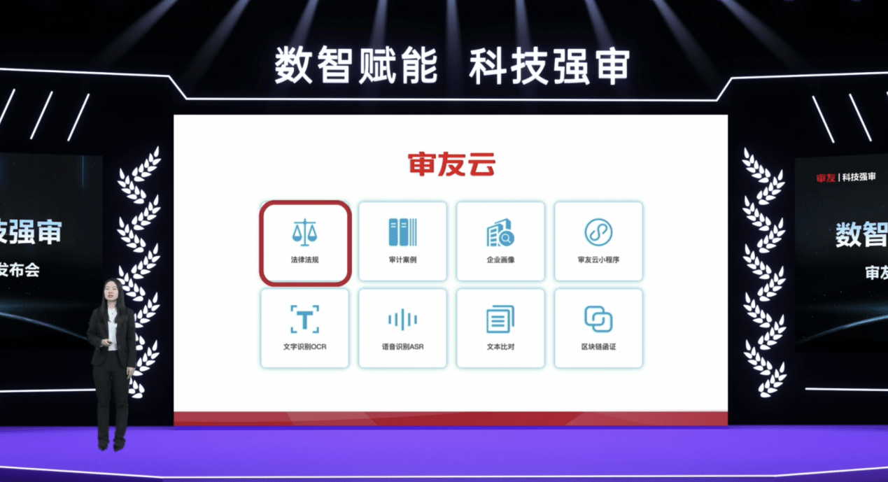 為了使參會人員可以更加直觀感受到“審友A7-數智化審計平臺”的高效與便捷,用友審計咨詢專家劉恩熙進行了線上“審友云場景演示觀摩”。“審友云”數智化云服務,提供法規云、案例云、企業畫像、文字識別OCR、語音識別ASR、 區塊鏈函證云、智能文檔比對等新功能、新技術,提高審計質量和效率,使審計更加智能與便捷。